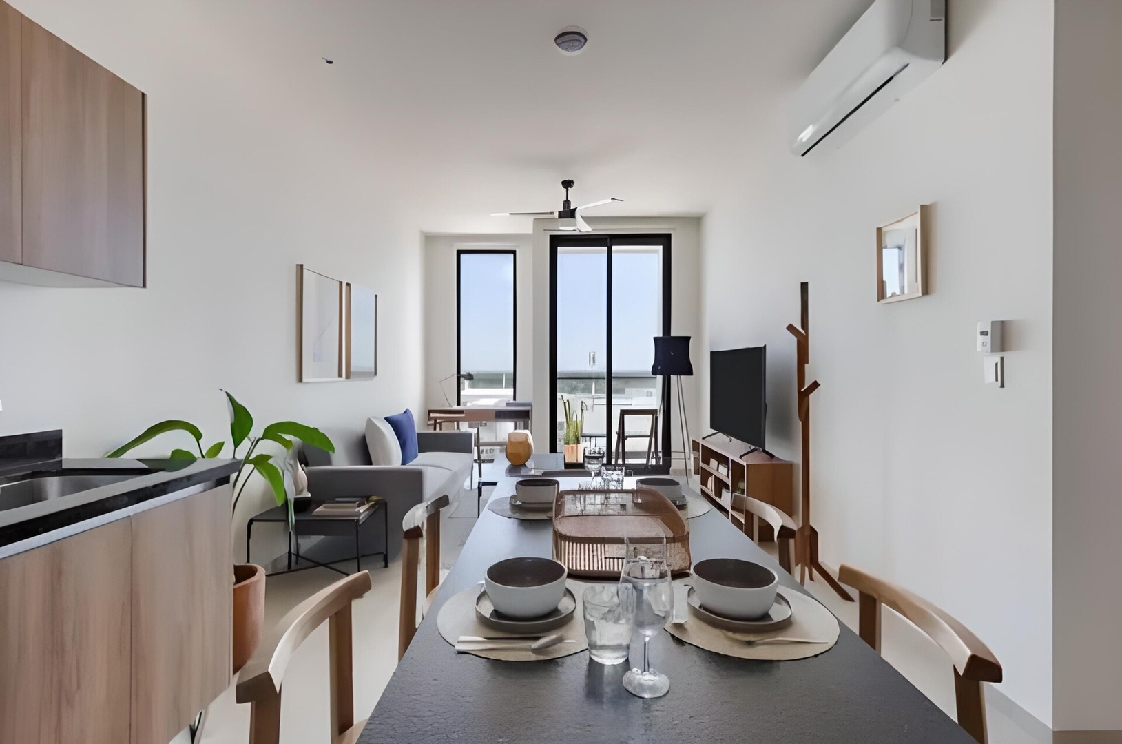 Enjoy the comfort of this sophisticated apartment with a cozy living room with smart-TV, equipped kitchen and a dining room for 6. You can enjoy spectacular views of the Nichupté Lagoon and the sea. With air conditioning throughout the interior and completely free Wi-Fi service; your perfect escape in Cancun.