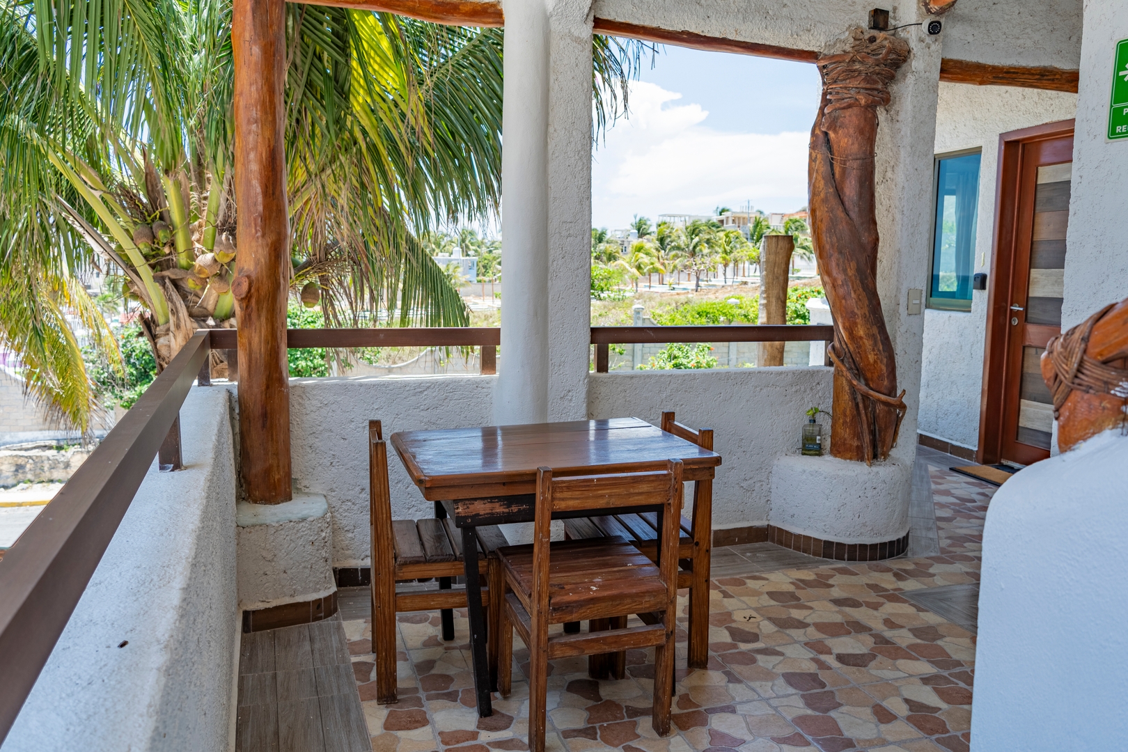 Perfect for friends or solo travelers, this spacious room features 3 comfortable beds, two single-size beds and one double-size bed, a full private bathroom, air conditioning, and a TV. Prepare light meals in the convenient kitchenette equipped with essentials. Enjoy access to the shared rooftop, where you can relax in outdoor furniture and soak in stunning views of the Caribbean Sea. A practical and relaxing stay in beautiful Isla Mujeres!