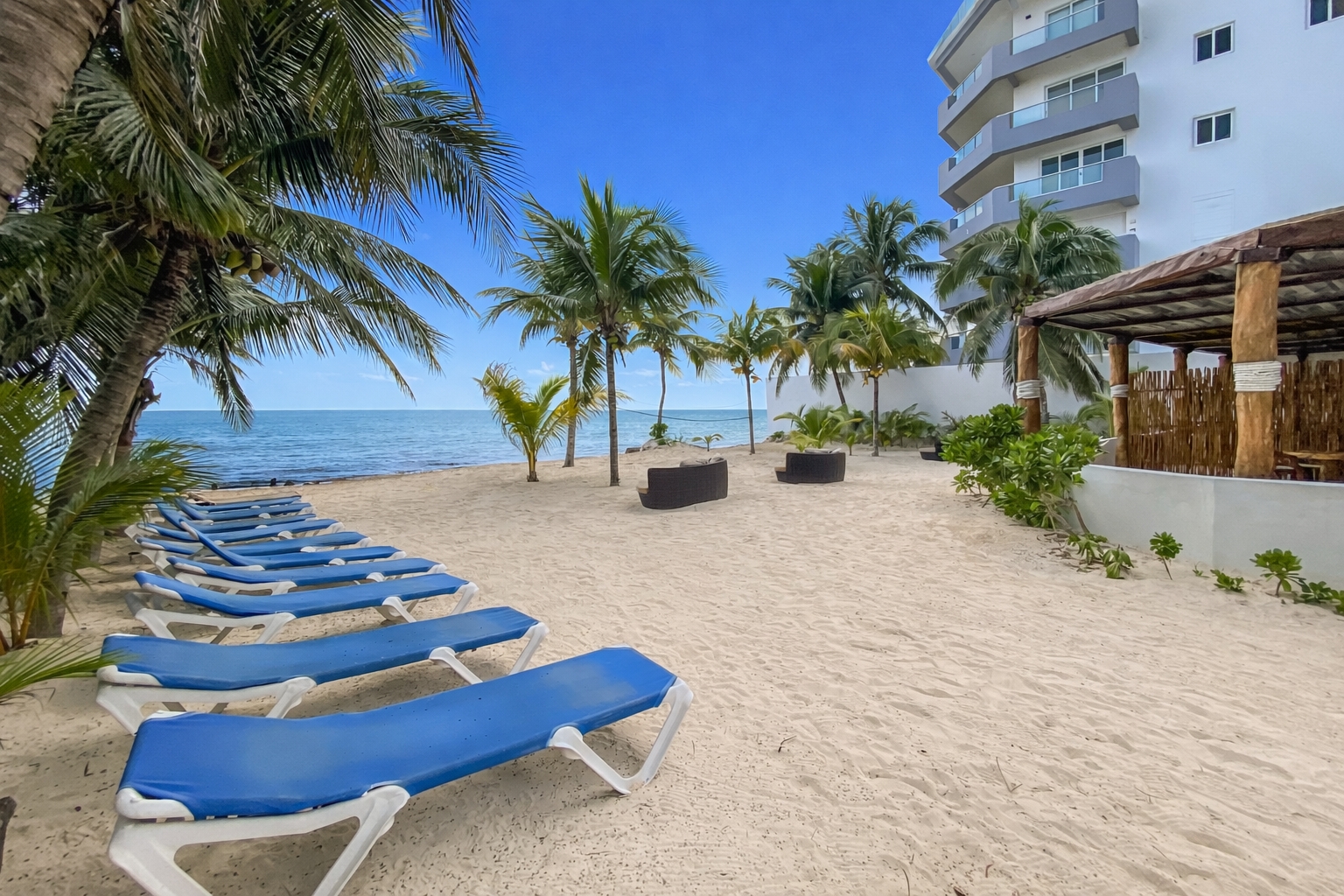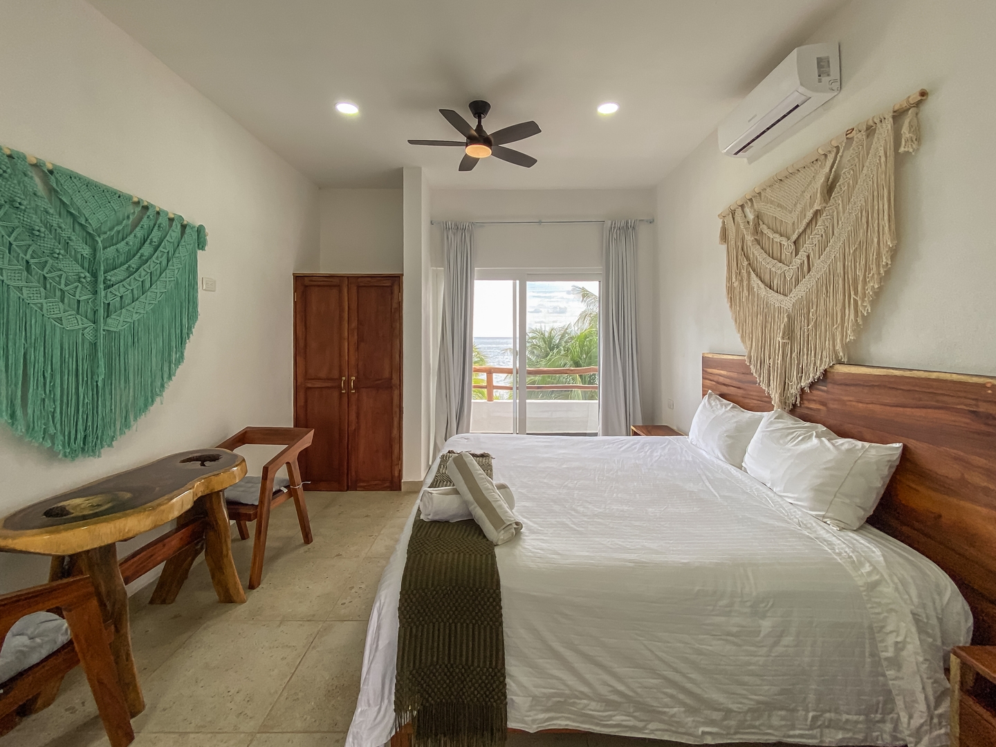 Kala is your personal viewpoint toward paradise. This exquisite King or Queen studio, located on the third floor, grants you panoramic ocean views from your private terrace. Designed for two, it offers a functional kitchenette and a private bathroom, all with a modern coastal style. Enjoy the pool and private beach in the exclusive Bahía Petempich. It is the luxury of total disconnection in an unspoiled environment, where a private car is key to an uninterrupted experience, minutes from the charm of Puerto Morelos.