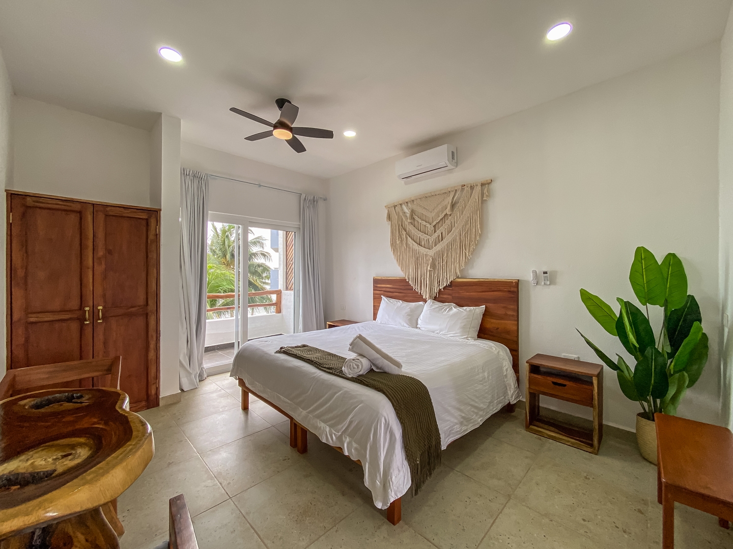 Kala is your private viewpoint. Situated on the third floor, this exquisite modern rustic design studio grants you sweeping Caribbean views from your own terrace. Ideal for two guests, it welcomes you with a luxurious King or Queen bed. The unit is equipped with a functional kitchenette, perfect for preparing your coffee while watching the sunrise over the sea, and a private bathroom that ensures your comfort. Enjoy serenity from above with access to the complex's pool and private beach. Your luxury retreat awaits.